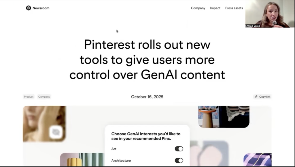 To this move to Pinterest marketing, I actually saw somebody that I follow who is also a Pinterest marketer talk about how it was such a smart and a strategic move by Pinterest to allow people to toggle off that gen AI feature because the thing is, people are going to lose inspiration and feel like everything is unattainable because it’s not real if everything is AI.